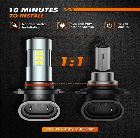 - Installed in 10 Minutes: The compact design makes it one of the fog lights closest to the size of halogen on the market. No decoder or any tools are needed to achieve a 10-minute plug-and-play